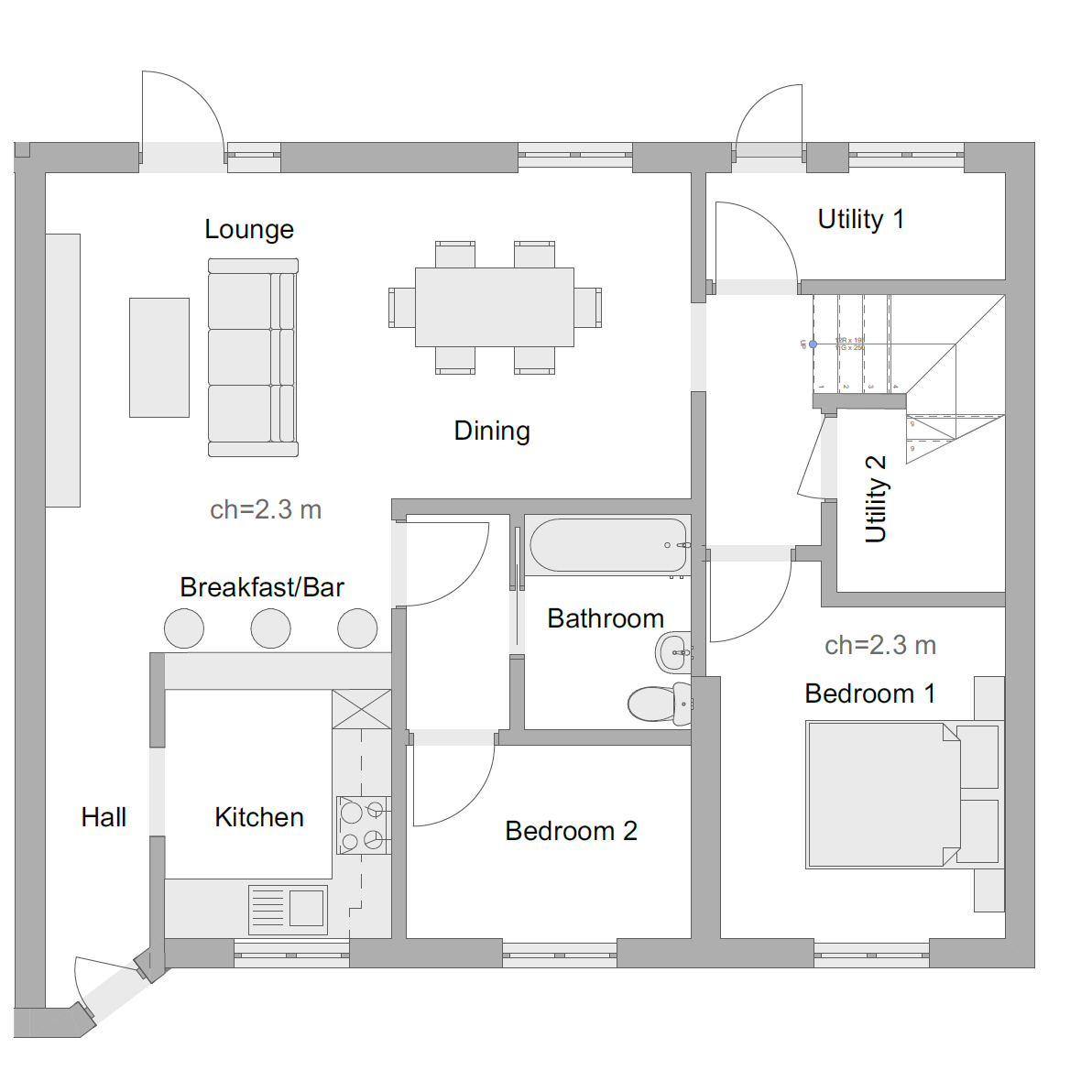 This project involved extending and reconfiguring a single-storey bungalow to create additional living spaces. The existing garage was converted into an extra bedroom with a staircase leading to the loft, which was transformed into an additional bedroom and a dedicated home office. The design maximizes the use of available space while maintaining a cohesive and functional layout for modern family living.