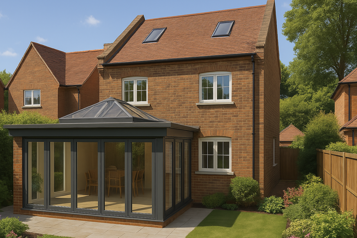 This project involved the addition of a conservatory to a four-bedroom family home, positioned within the rear garden to enhance the connection between the house and its outdoor space. The design was carefully integrated with the existing property, creating a bright and functional extension that increases usable living space.