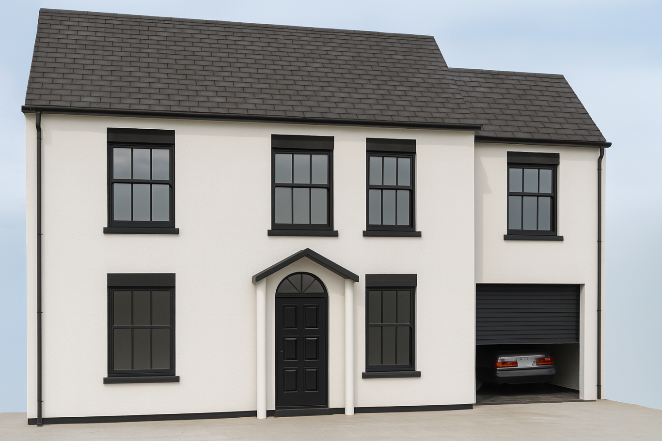 The existing garage was converted from a single to a double garage, increasing storage and parking capacity. On the first floor, the layout was carefully reworked to improve flow and usability. The master bedroom was enlarged to include a walk-in wardrobe and en-suite bathroom, alongside the creation of an additional bedroom.