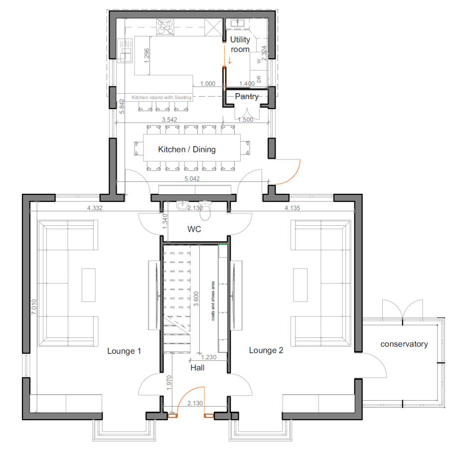 This project involved a comprehensive house extension and internal reconfiguration to significantly enhance both space and functionality. The ground floor was extended to create a second lounge and a larger, more open kitchen, improving flexibility for family living and entertaining.
